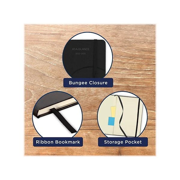 The AT-A-GLANCE Plan.Write.Remember. academic weekly and monthly appointment book gives you space to track priorities and take notes as you plan. Easily capture your schedule with this planner. Convenient hourly appointment slots and Hot Spot reminder section help you stay organized.