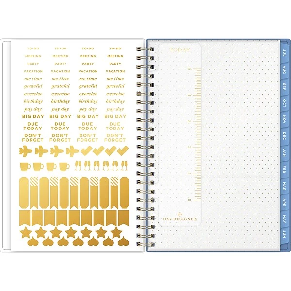 Organize your life with this Day Designer for Blue Sky 5″ x 8″ academic planning calendar. Discover everyday luxury with high-quality white paper, a flexible cover featuring a Climbing Floral Blush pattern with gold-tone accents and a clear cover pocket, spacious calendar layouts, and dedicated pages for your notes and contacts. Create a healthy routine with the four-step planning process, an easy-to-follow guide to goal setting that helps you live a more intentional, focused, and well-designed life.