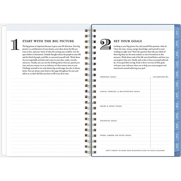 - Spiral binding keeps the planner intact