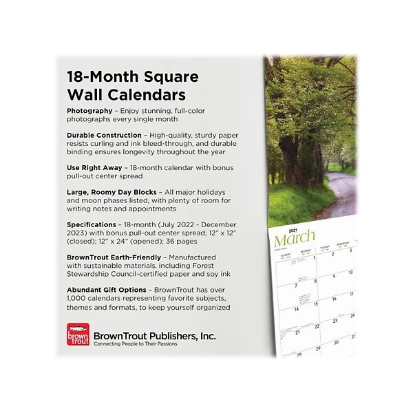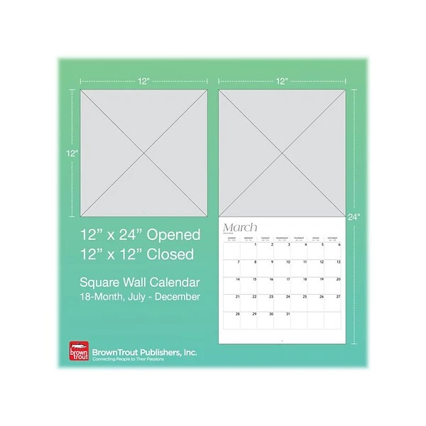 The BrownTrout Large Print wall calendar features solid black text against a white background for better clarity. With large text and numbers for easy reading and large boxes with plenty of space to write in appointments and special dates, this square wall calendar is perfect for those with low vision. Full 18-month format (July 2022 to December 2023) for even longer time tracking. Features a special foil stamp treatment on the cover.