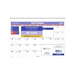 Hang the AT-A-GLANCE monthly desk/wall calendar on the wall, or place it on your desktop for versatile planning. Smaller in size but large in features, this monthly calendar makes it easy to manage the upcoming academic year. Unruled blocks and full notes pages provide plenty of space to record all of your appointments, special events, reminders, and more.