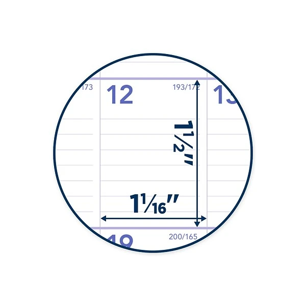 - One month per page layout with 1.06″ x 1.5″ ruled daily blocks to keep handwriting aligned