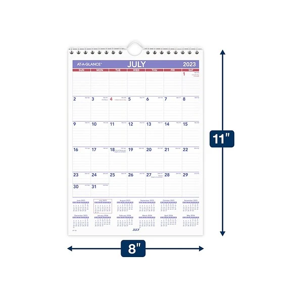 The AT-A-GLANCE academic monthly wall calendar has plenty of space for planning throughout the year. Keep all of your events, deadlines, and more organized. With a convenient small size, this wire-bound monthly wall calendar is perfect for tracking significant events and activities over the course of an academic year.
