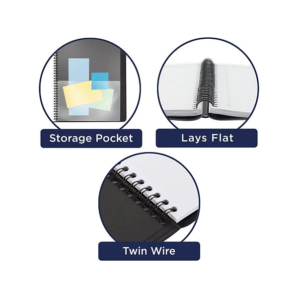 - Features a black faux leather cover and twin-wire binding to prevent snags and secure the pages