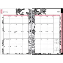 - Planner has a poly cover in charcoal color and twin-wire binding to prevent snags and secure pages