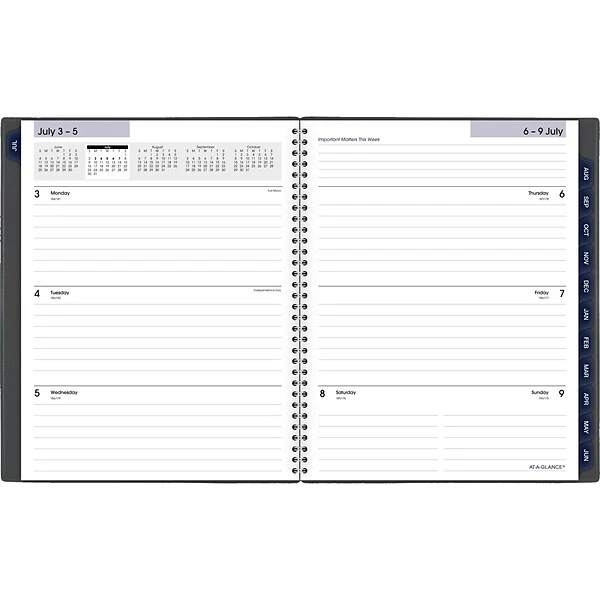 The only planner you’ll need to keep your schedule on track. The AT-A-GLANCE DayMinder planner is designed for teachers, administrators, parents, or other professionals who prefer planning on the academic calendar. Covers 12 months from July 2023 to June 2024 with Julian dates. Each month is tabbed for easy navigation.