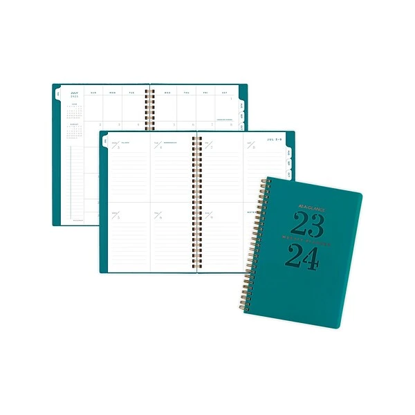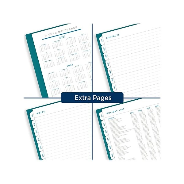 - Modern and simplified cover in teal with die-cut date badge gives you professional style with a pop of color