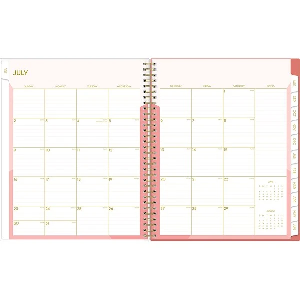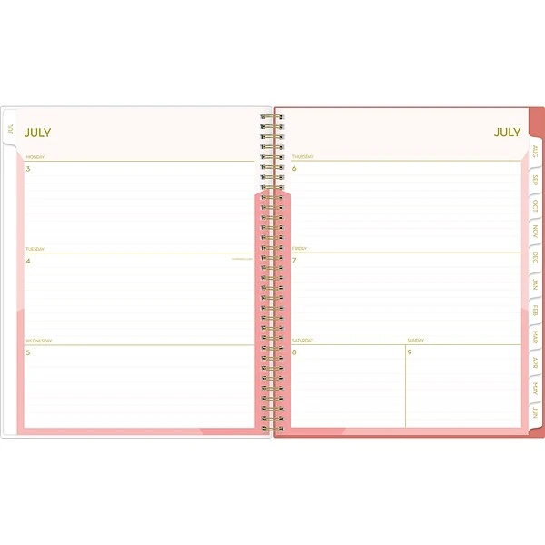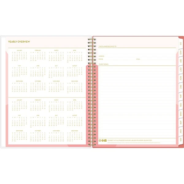 Plan to do more of what you love with an academic planner from Blue Sky. This large 12-month planner has lined weekly pages and tabbed monthly views to help you stay focused. It also includes a clear pocket cover for displaying photos or artwork and pages for notes, goals, and important dates.
