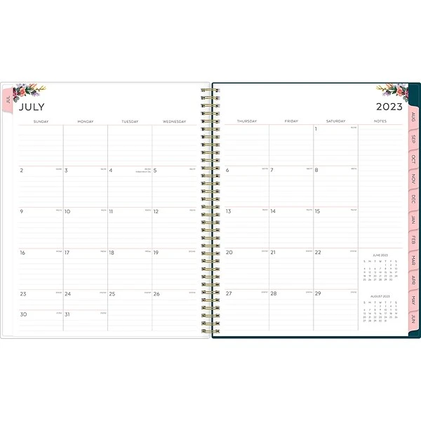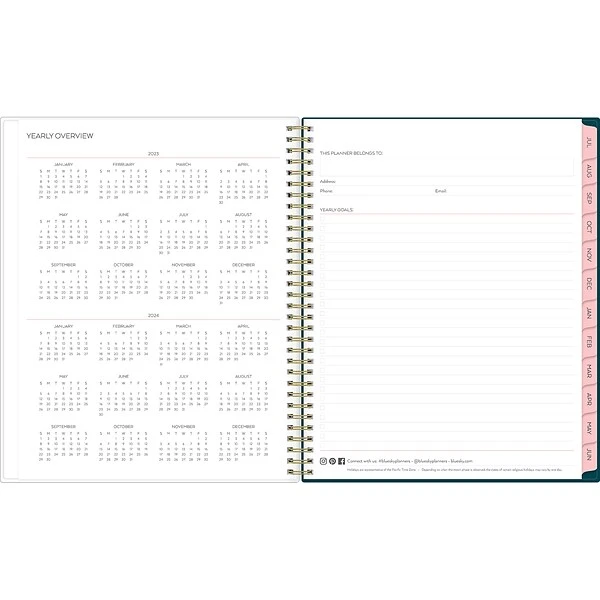 Plan to do more of what you love with an academic planner from Blue Sky. This Greta large 12-month planner has lined weekly pages and tabbed monthly views to help you stay focused. It also includes a storage pocket and pages for notes, goals, and important dates.