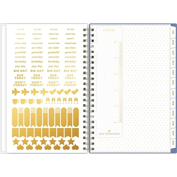 Organize your life with a luxe weekly planner from Day Designer for Blue Sky. This weekly and monthly planner with a Climbing Floral Blush design has lined weekly views with room for your to-dos and top three priorities. Enjoy a clear cover storage pocket, goal-setting worksheets, and a flexible cover for premium durability.