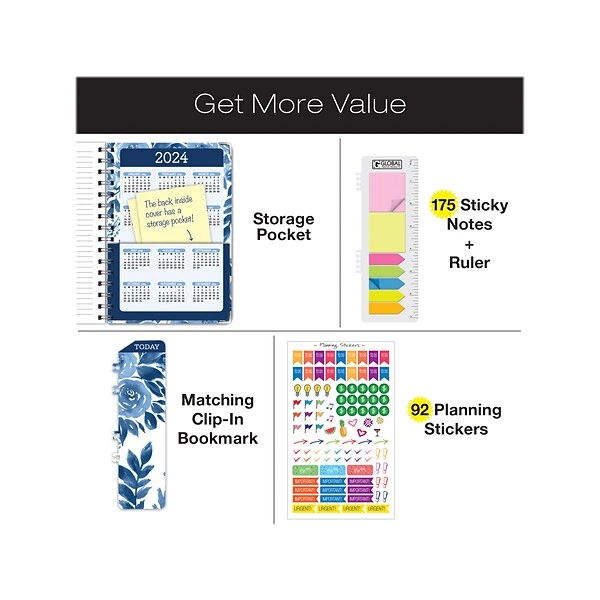 This Global Printed Products Blue Bloom 2023-2024 academic weekly and monthly planner is perfect to keep you organized and focused on your dream goals. Global Printed Products use high-quality materials in their planners to ensure that they stay as attractive and durable in the hands of students as they were when they left the press.