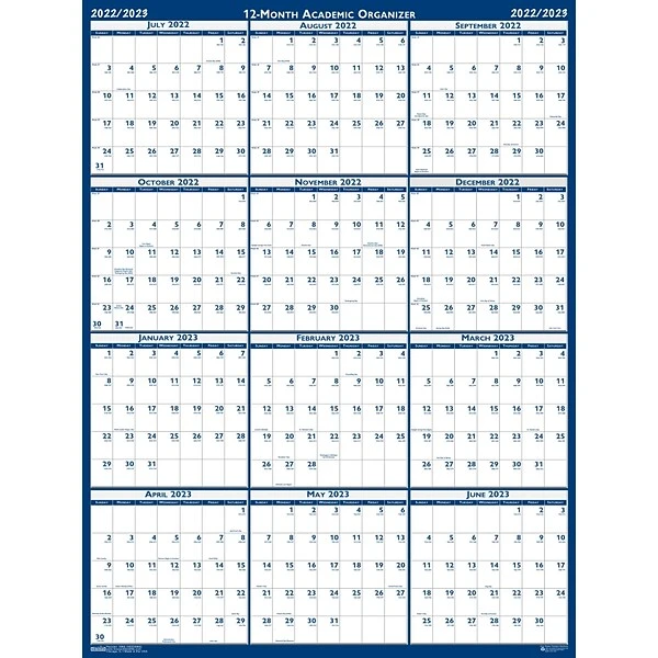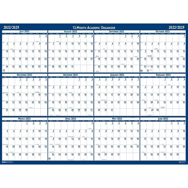 The House of Doolittle erasable academic wall poster can be positioned on any flat surface such as a wall. The heavy-laminated write-on/wipe-off surface wipes clean with a damp cloth for repeated use. The calendar is vertical on one side and horizontal on the reverse. Individually tubed for easy shipping.