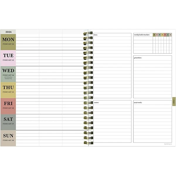 - Planner boasts two-page monthly spreads that include lined sections for notes, tasks, and goals; and two-page weekly spreads with lined daily sections to keep plans neat and organized