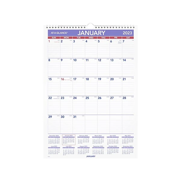 Loaded with room for scheduling, this AT-A-GLANCE monthly wall calendar is perfect for planning significant events and activities over the course of the year. Features large ruled daily blocks for detailed notes.
