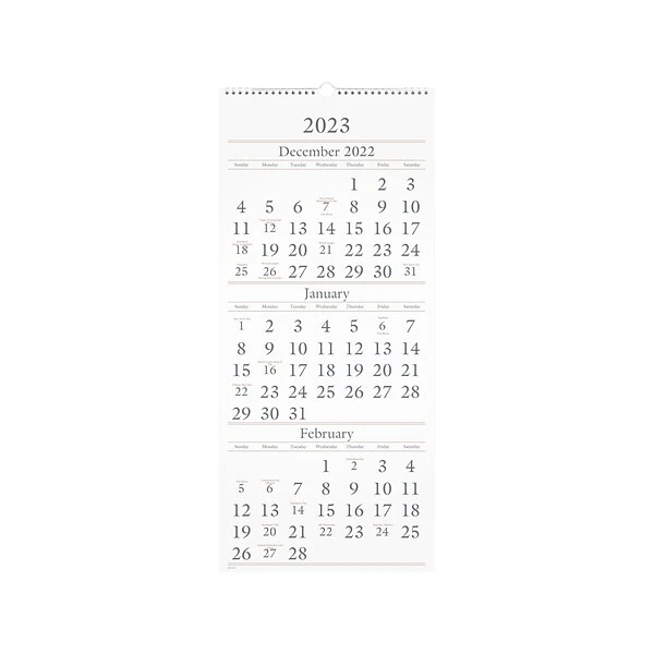 Plan and track your goals easily by viewing three months at a time with the convenient AT-A-GLANCE long-range wall calendar. With unruled daily blocks and large numbers, you can use it to stay organized all year long. The vertical orientation of the wall calendar is easy to follow. The calendar covers a 15-month date range from December 2022 to February 2024.