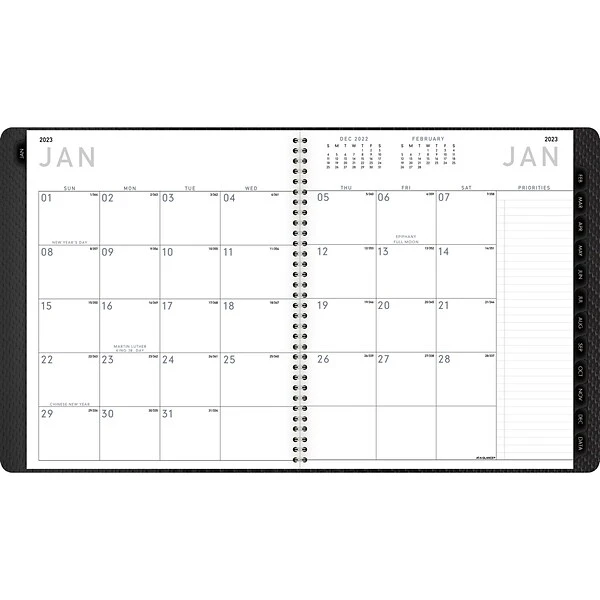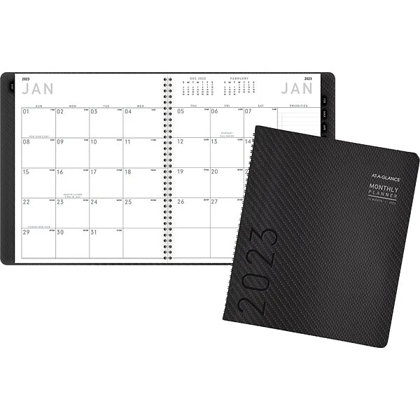 The AT-A-GLANCE monthly planner features a unique cover and makes it easy to keep the big picture in view. The monthly spreads with space for priorities and notes allow you to conveniently keep track of what’s important.