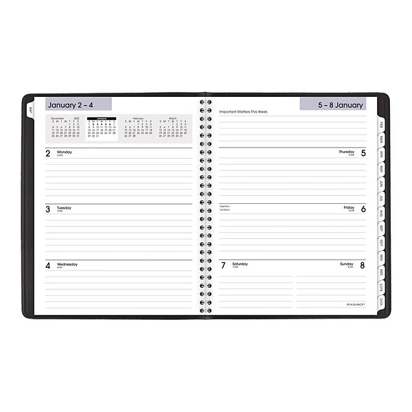 Stay organized between work and home all year long with the AT-A-GLANCE DayMinder Executive weekly and monthly planner. See the big picture on the monthly spreads and detailed plans on the weekly layouts.