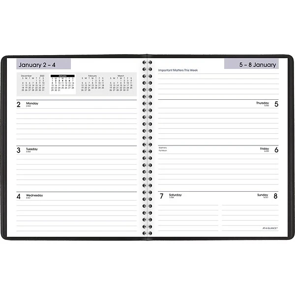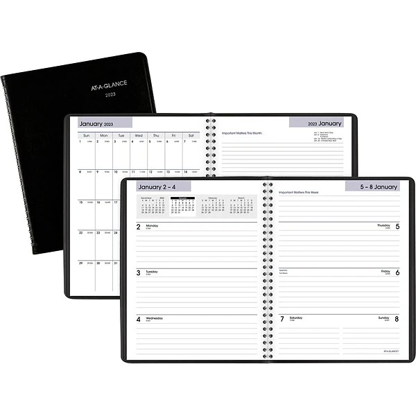 Give your plans a professional touch with the AT-A-GLANCE DayMinder Executive weekly and monthly planner. Stay organized between work and home all year long with this planner. See the big picture on the monthly spreads and detailed plans on the weekly layouts.
