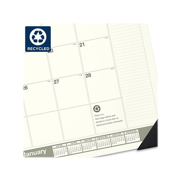 - This recycled 2023 desk pad helps you plan and serves as a convenient place to jot down reminders of important deadlines and special events