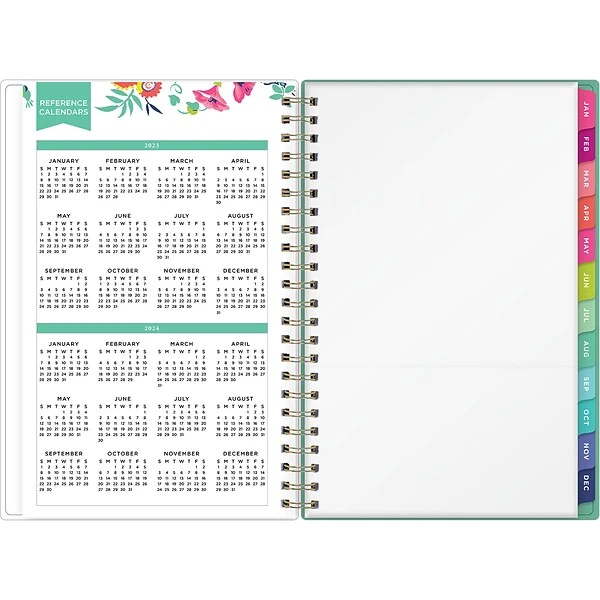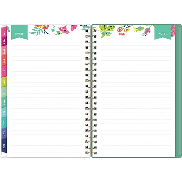 - Two-page weekly and monthly calendar layouts offer extra writing space