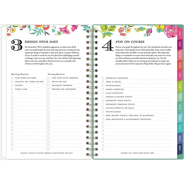 Design your days with the planner from Day Designer for Blue Sky, featuring weekly and monthly planning calendars with checklists for your to-dos, dedicated notes pages, a clear cover pocket for storage, and a flexible cover featuring a Peyton White floral pattern. This luxe 12-month planning calendar includes the Day Designer four-step planning process, an easy guide to goal setting that helps you stay focused and create a balanced routine.