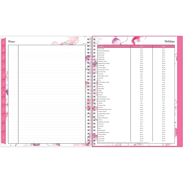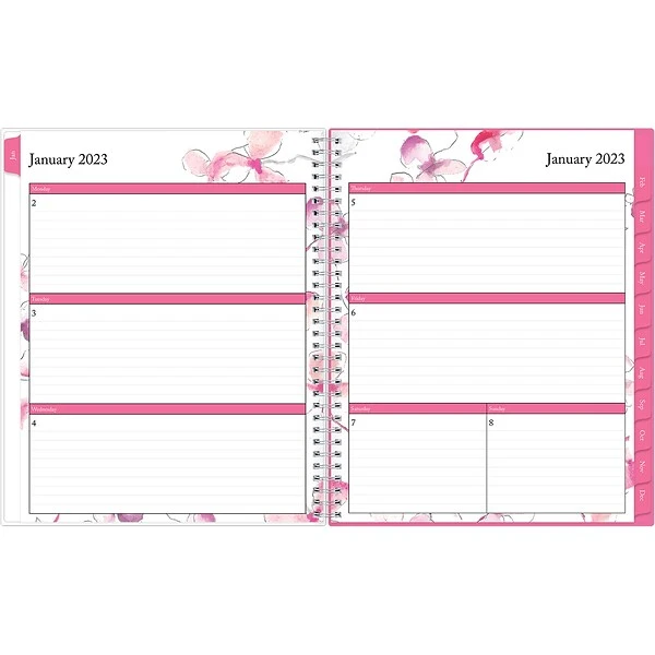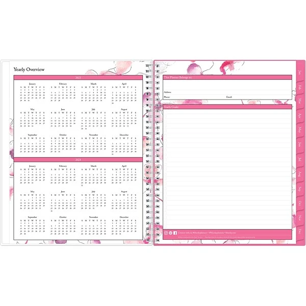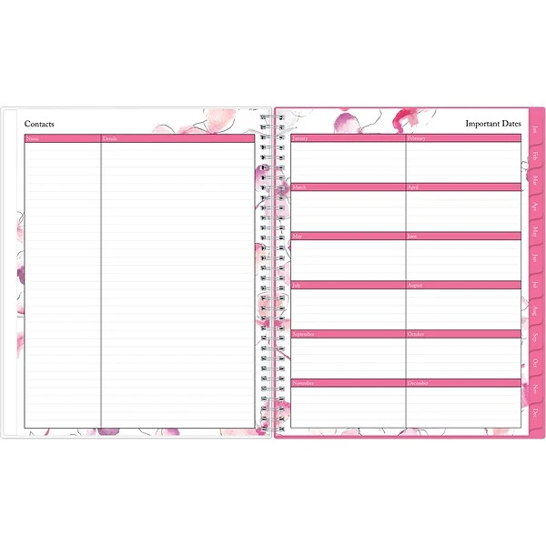 Plan to do good with the versatile, easy-to-use weekly monthly planner from Blue Sky, made in partnership with the breastcancer.org. The planner provides spacious weekly and tabbed monthly calendar views, dedicated notes pages, and a flexible cover that will hold up beautifully throughout the year. Features an Orchid cover print in pink and white and a clear cover pocket to display artwork or photos for a customized look.