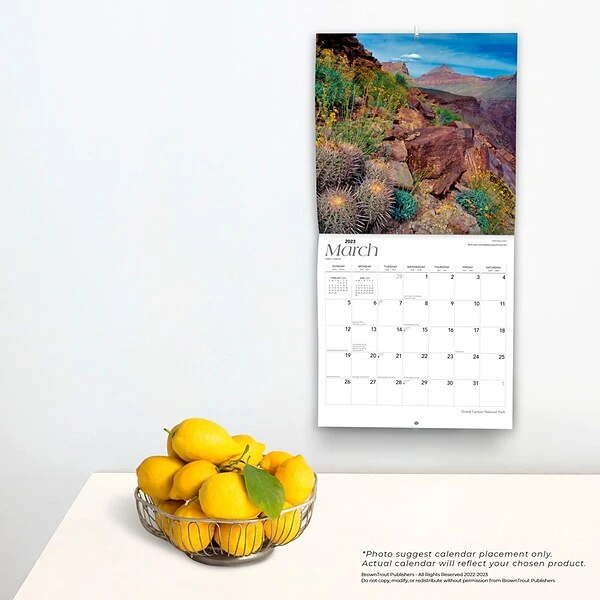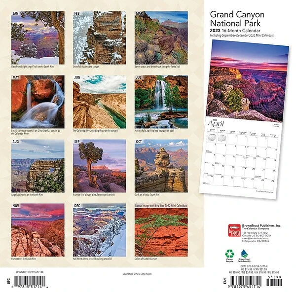 Carved by the Colorado River in Arizona, the Grand Canyon is a vision of rocky beauty. The canyon was born more than 17 million years ago and is now maintained by the Grand Canyon National Park, the Hualapai Tribal Nation, and the Havasupai Tribe. Colorful striations and vivid desert plants fill this amazing square wall calendar, mentally transporting you directly to the site. Classic square format. Updated style. Our wall calendars include stunning images and even clearer grids and text. Filled with an abundance of holidays, each month’s grid is large enough for daily tasks and appointments.