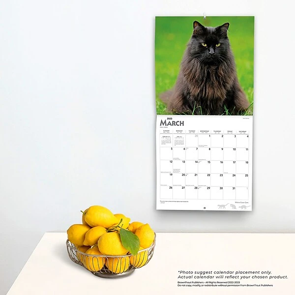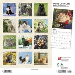 Maine Coon cats are noted for their large bone structure, hunting skills, and noticeably long hair. This popular cat comes in many different sizes and colors, all captured in this adorable 16-month wall calendar. If you love cats, especially exotic-looking ones, then this square wall calendar will make a lovely addition to your home. Classic square format. Updated style. Our wall calendars include stunning images and even clearer grids and text. Filled with an abundance of holidays, each month’s grid is large enough for daily tasks and appointments.