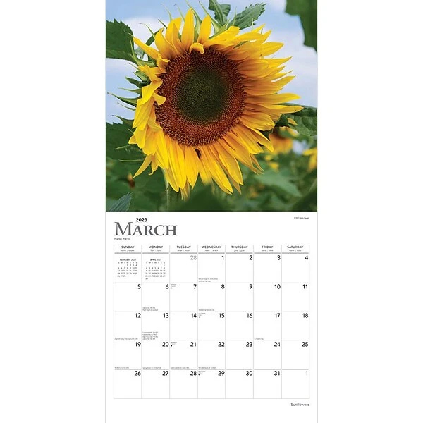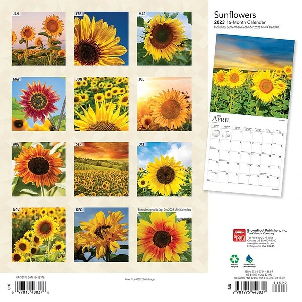 While its seeds make a delightful snack and a remarkably useful oil, the blossom of the sunflower is more a feast for the eyes. Native to the North American continent and immortalized in a series of Vincent van Gogh paintings, the sunflower is adored for its fulsome yellow-rayed flower and faithful following of the sun. Admire this incomparable plant with a Sunflowers square wall calendar. Classic format. Updated style. Our wall calendars include stunning images and even clearer grids and text. Filled with an abundance of holidays, each month’s grid is large enough for daily tasks and appointments.