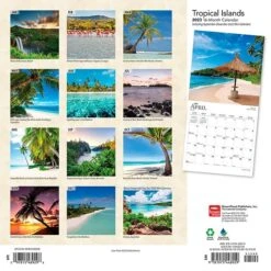 The world is bejeweled with enchanting island destinations. The golden sun, ivory sands, turquoise bays, and lush tropical forests of these welcoming island retreats are just waiting to be discovered and enjoyed. This square wall calendar invites you to the turquoise water and soul-warming sunshine of tropical island paradises, revealing the breathtaking allure of islands around the world. Classic square format. Updated style. Our wall calendars include stunning images and even clearer grids and text. Filled with an abundance of holidays, each month’s grid is large enough for daily tasks and appointments.