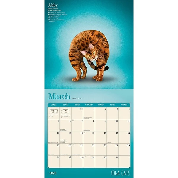From the mind that brought you the best-selling Yoga Dogs calendar comes this a-meow-sing Yoga Cats wall calendar. The Yoga Cats calendar hosts a year full of images showing felines positioned in classic yoga postures with the help of digital technology. These reworked kitty portraits will bend your mind and delight you to no end. Classic square format. Updated style. Our wall calendars include stunning images and even clearer grids and text. Filled with an abundance of holidays, each month’s grid is large enough for daily tasks and appointments.