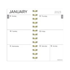 - Two-page weekly and monthly calendar layouts offer extra writing space