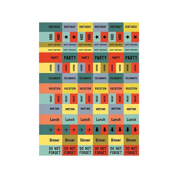 - Comes in a Big & Loud Year design in yellow, blue, green, and orange on a beige background