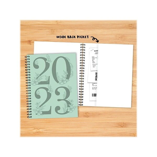 This Willow Creek Mint Year 6.5″ x 8.5″ softcover weekly planner combines fashion with fun, functional features that are perfect for laying out the year ahead. In addition to monthly snapshots and two-page weekly spreads that provide ample space for detailed planning, there are also sections for weekly shopping lists, goals, and a habit tracker. Printed with soy-based inks on high-quality FSC certified paper, this planner includes a spiral binding, monthly faux tabs which make accessing information a breeze, and over 300 stickers to dress up special days such as birthdays and other upcoming events on your social calendar. Protected by a durable plastic-free cover, this planner also includes a handy storage pocket offering a secure space for papers, receipts, and other important items.