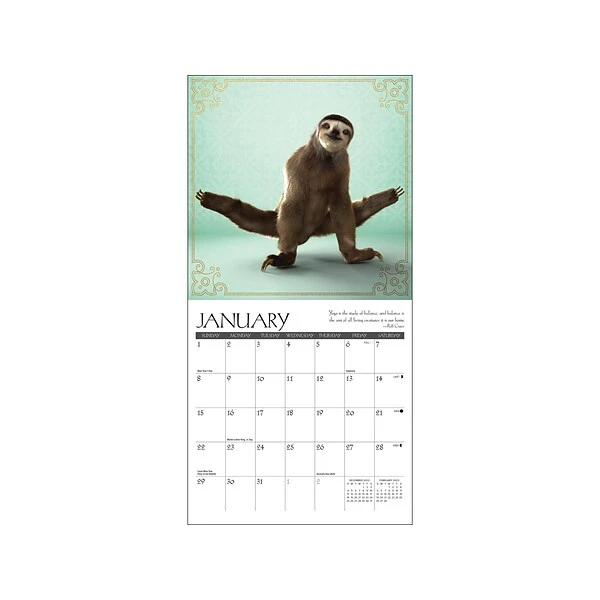 These sloth yogis are in no rush to complete their 2023 yoga sequence, often taking an entire month just to complete a single pose. Sloth Yoga takes this popular meditative practice to a new level of zen. Printed with soy-based inks on FSC certified paper, this Willow Creek Sloth Yoga 7″ x 7″ mini wall calendar features large monthly grids that offer ample room for jotting notes, along with six bonus months of July 2022 through December 2022. Also includes moon phases (CST), standard US and international holidays.