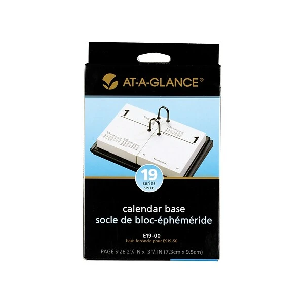 Display standard 19 style calendar refills in this calendar base with plastic feet to protect desk surfaces from scratches. Designed to accommodate a new loose-leaf calendar every year, this AT-A-GLANCE desk calendar base helps display horizontally-oriented calendars year-round.