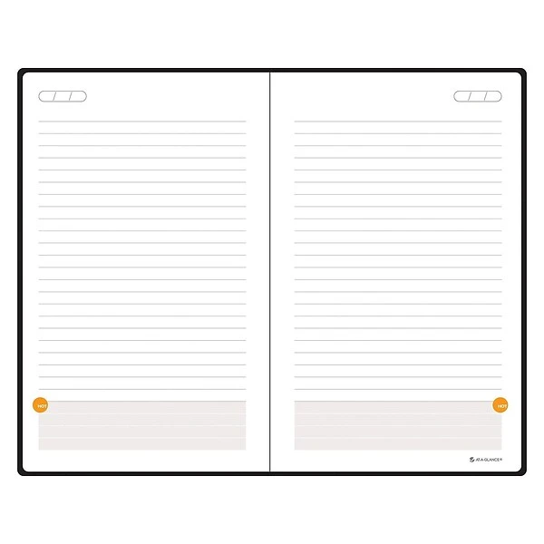 Organize busy days with this convenient planning notebook. Offering over 130 lined pages, reference calendars, and monthly note spaces, this appointment book is built for detailed schedule management. Three-year monthly overviews provide scheduling context, while reminder sections highlight important items. Perfect-bound for a smartbook finish, this AT-A-GLANCE planning notebook includes a gusseted pocket for extra storage.