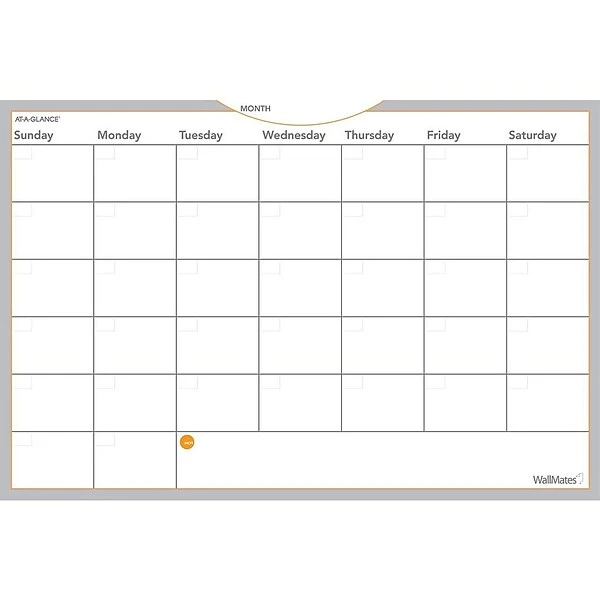 Organize your schedule with this monthly planning surface. The dry-erase format and blank-calendar entries make it easy to reuse this planner over and over again, while the note section at the bottom lets you add personal reminders for events that are more than a month out. With a self-adhesive backing, this AT-A-GLANCE WallMates planning surface installs effortlessly without the need for hardware or tools. A calendar is a necessity for every workspace. This dry-erase monthly planning surface can turn your office walls, doors and other spaces into a convenient, neat and easy to use platform for your calendar to help you stay organized one month at a time.