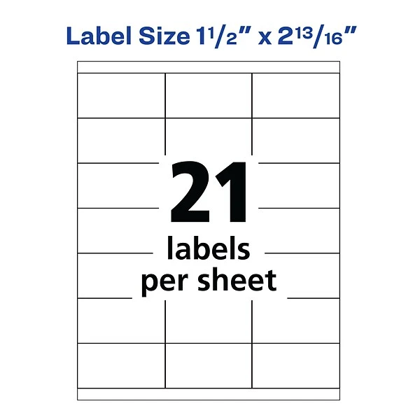Creating visually elegant projects often needs engaging labels. Produce appealing labels with Avery Address Labels for Copiers. Having a label without a strong stick can ruin any project. Designed to stick and stay, the copier labels includes a permanent adhesive that provides a solid hold on any smooth surface. Customizing your personalized address labels is made easy with the free designs, templates, and mail merge tools found on avery.com/templates. Use the blank white multipurpose labels create your customizable return address labels and mailing labels. Along with your mailing labels, the customizable address labels are great for barcode labels, organization labels, bin labels, product labels, and more.The printable labels are optimized for high-speed copiers. Large scale printing does not need to be daunting. To mass print your labels, simply create a master sheet and print your desired amount of copies. Each of the individual labels are sized at 1″ x 2-13/16″. The pack includes 2,100 labels.