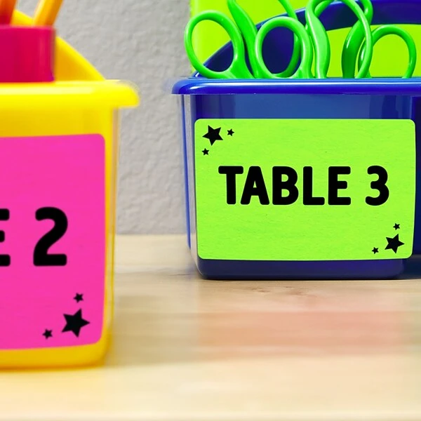 - Use the bright neon labels as color coding ID labels, organization labels, shipping labels, package labels, bin labels, and storage labels