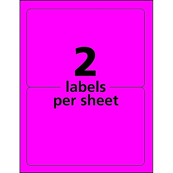 Create eye-catching printable color labels and make your next project or shipment stand out with Avery Neon Pink Shipping Labels for Laser Printers. Having engaging labels with attention-grabbing colors can provide the additional appeal needed for any catchy phrase. Whether you’re creating Identification labels or packaging labels, these bright color labels can help capture your audience’s attention. Easily design and personalize your unique printable labels with the thousands of free designs and templates at avery.com/templates. Having a label without a strong stick can ruin any labeling project. For long lasting hold on any surface, these strong stick 5-1/2″ x 8-1/2″ fluorescent pink neon labels are designed with a permanent adhesive. Expect high-quality, smudge free printing results with these laser printer optimized neon labels.