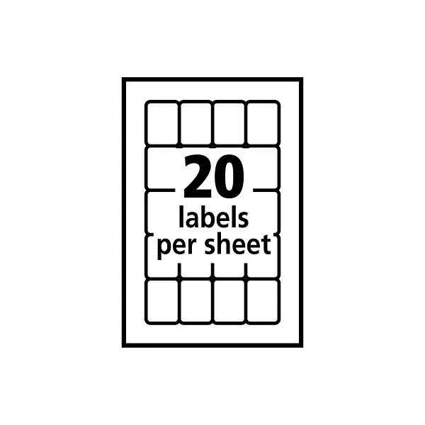- 20 labels per sheet, 50 sheets per pack; 1000 total labels