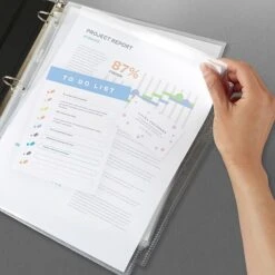 Keep contracts, invoices, and other paperwork protected from damage with these sheet protectors. Made from acid-free material, these sheet protectors resist lifting ink from documents, making them ideal for long-term storage. The top flaps ensure that contents stay securely stored inside. These Avery diamond-clear sheet protectors feature prepunched edges, so you can easily add them to folders, binders, and other three-hole binding systems.