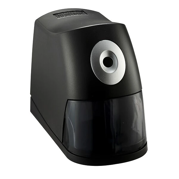 Get a smooth sharp point on all of your pencils with this electric sharpener. Tip Saver technology prevents over sharpening and broken tips, and the integrated safety switch prevents operation without the shavings tray in place. This freestanding black Bostitch electric pencil sharpener has a slide-out bin for quick removal of shavings.