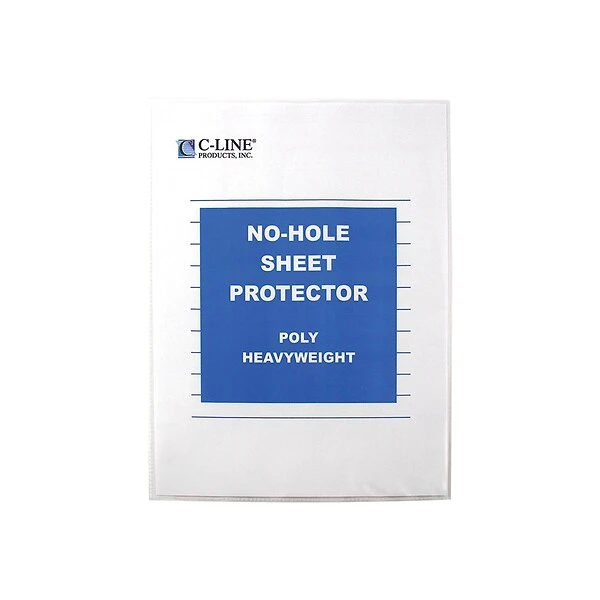 Protect frequently used papers with these sheet protectors. Made with acid-free material, these protectors prevent photocopy transfers and yellowing over time, while the no-hole construction lets them be used by themselves to post signs. These C-Line heavyweight top-load sheet protectors come with 25 per pack and are made with strong polypropylene, preventing wear and tear from regular use.