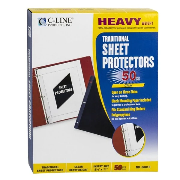 C-Line Sheet Protector, Vinyl, Super-Heavyweight, Non-Glare, 8-1/2″ X 11″, Clear, 50/Box (CLI61018)
