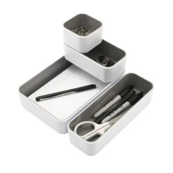 Fusion 4-Pack Stacking Bins are clean, modern space-shapers that organize desktop accessories