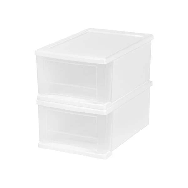 - Stackable 7 qt. storage drawers are a great alternative to cardboard boxes