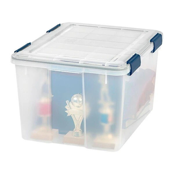 Ensure your important items are properly stored with this storage bin. The 46-quart capacity allows space for larger items while the durable plastic construction protects contents from moisture and other potential damage. This Iris WEATHERTIGHT storage bin features a latch lid, keeping items secure and preventing accidental lid removal during shifts or moves.