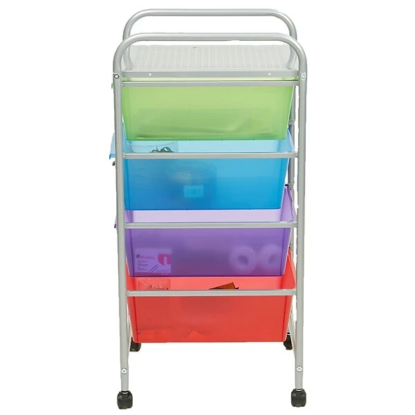 This four drawer rolling storage bin is the perfect way to stay organized in any home or office space. The translucent and removable bins help you see what you are storing while giving you easy access whenever you need. The multi-colored drawers are the perfect pop of color in a bland office to brighten up your day.